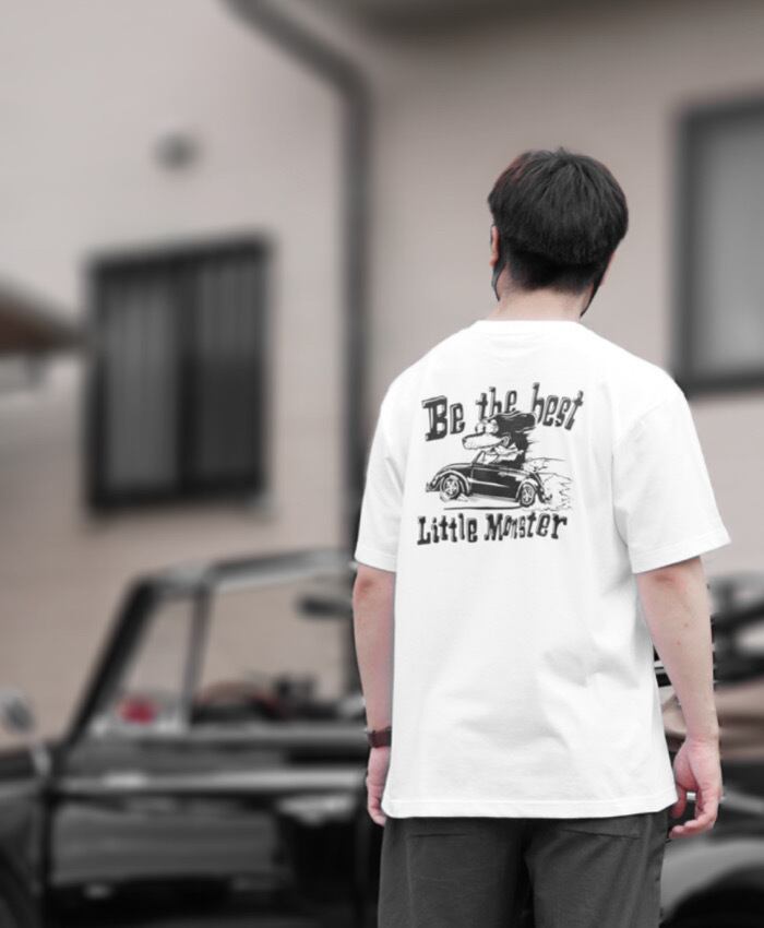 ピンストライクで描かれたvw ワーゲン 犬のイラストがバックプリントされたかっこいいTシャツ!!